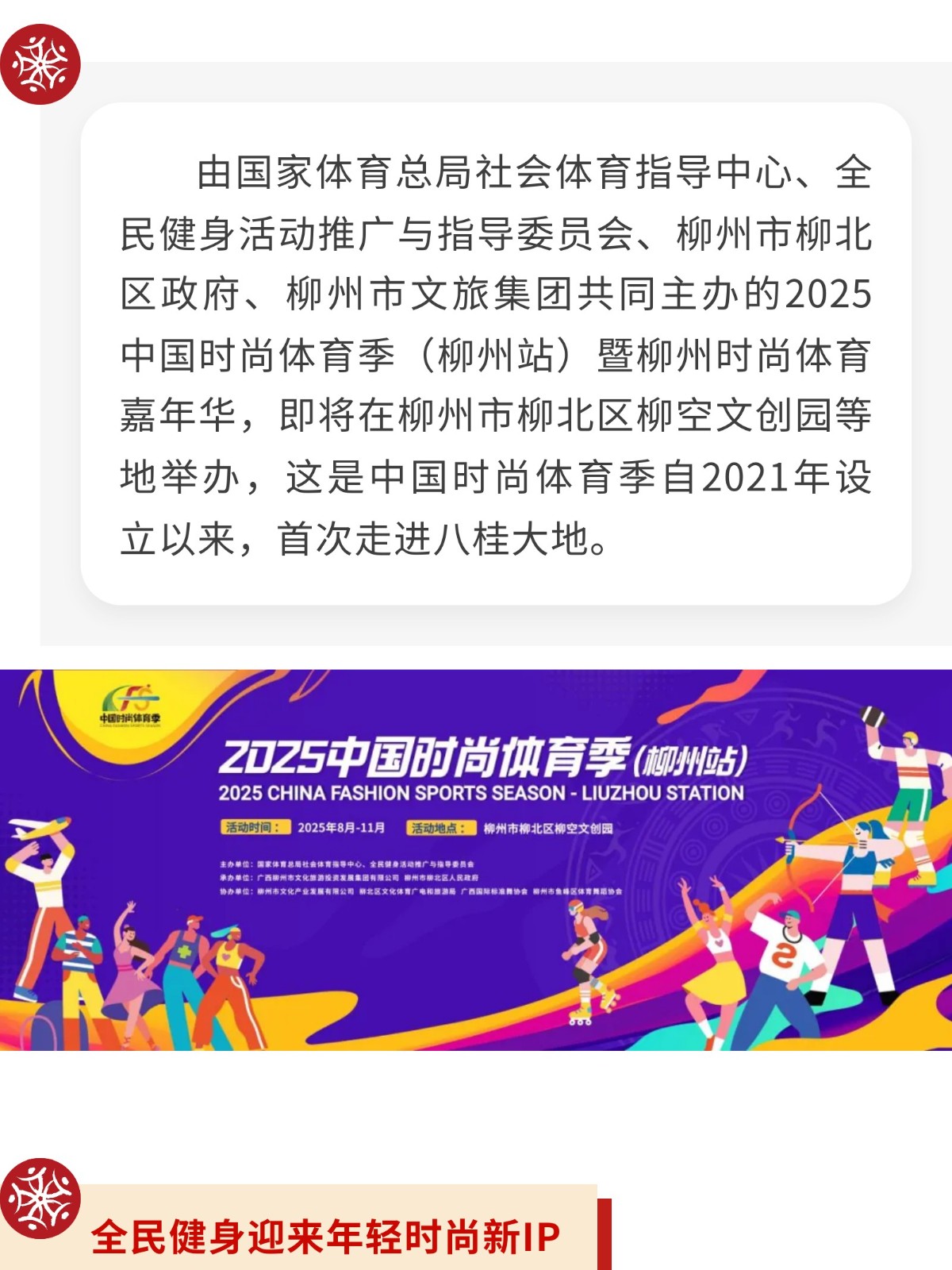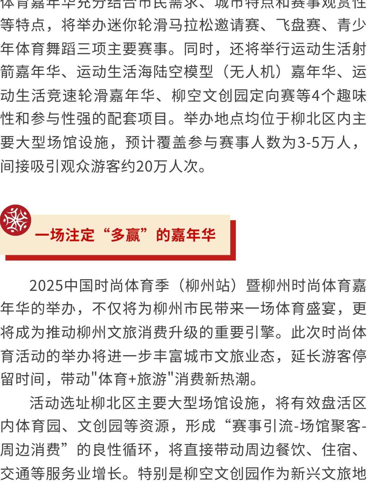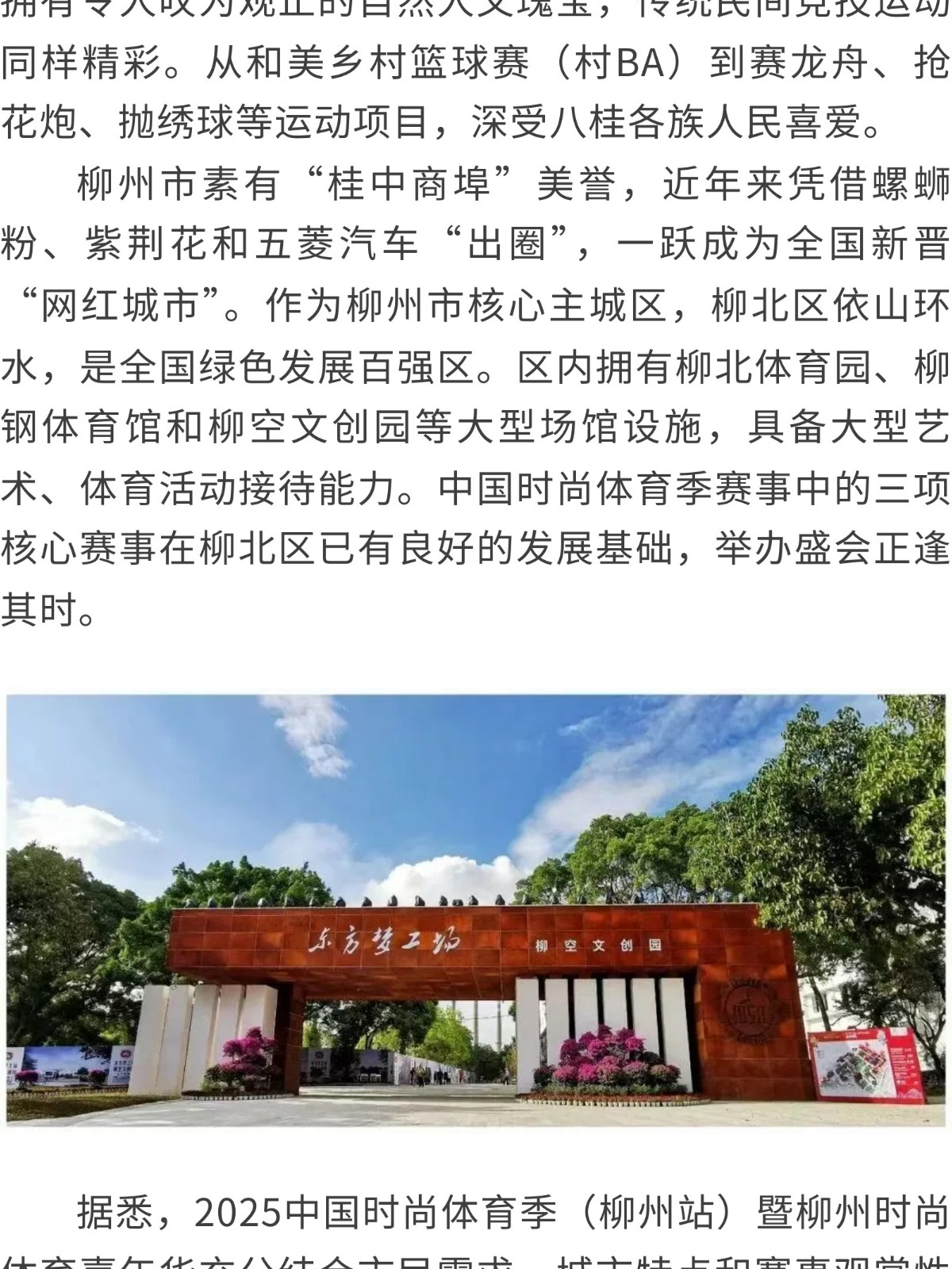 中國時(shí)尚體育季“首秀”廣西,定在柳州! 發(fā)布時(shí)間:2025年07月30日 10時(shí)來(lái)源:本站原創(chuàng )瀏覽:5 人次