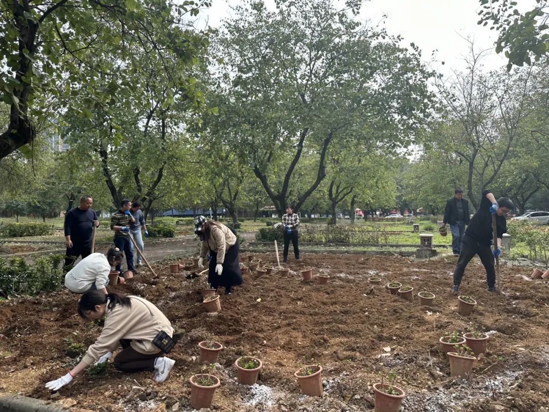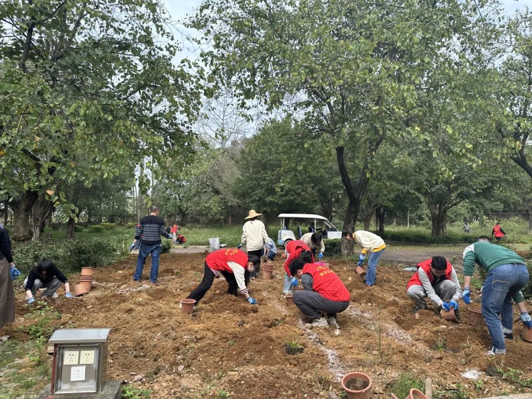 勞作現場,大家踴躍參與、干勁十足,通力協(xié)作、默契配合,揮鍬填坑、放置樹苗、培土夯實、澆水施肥,各環(huán)節(jié)井然有序,最后完成了一百多棵樹苗種植工作。