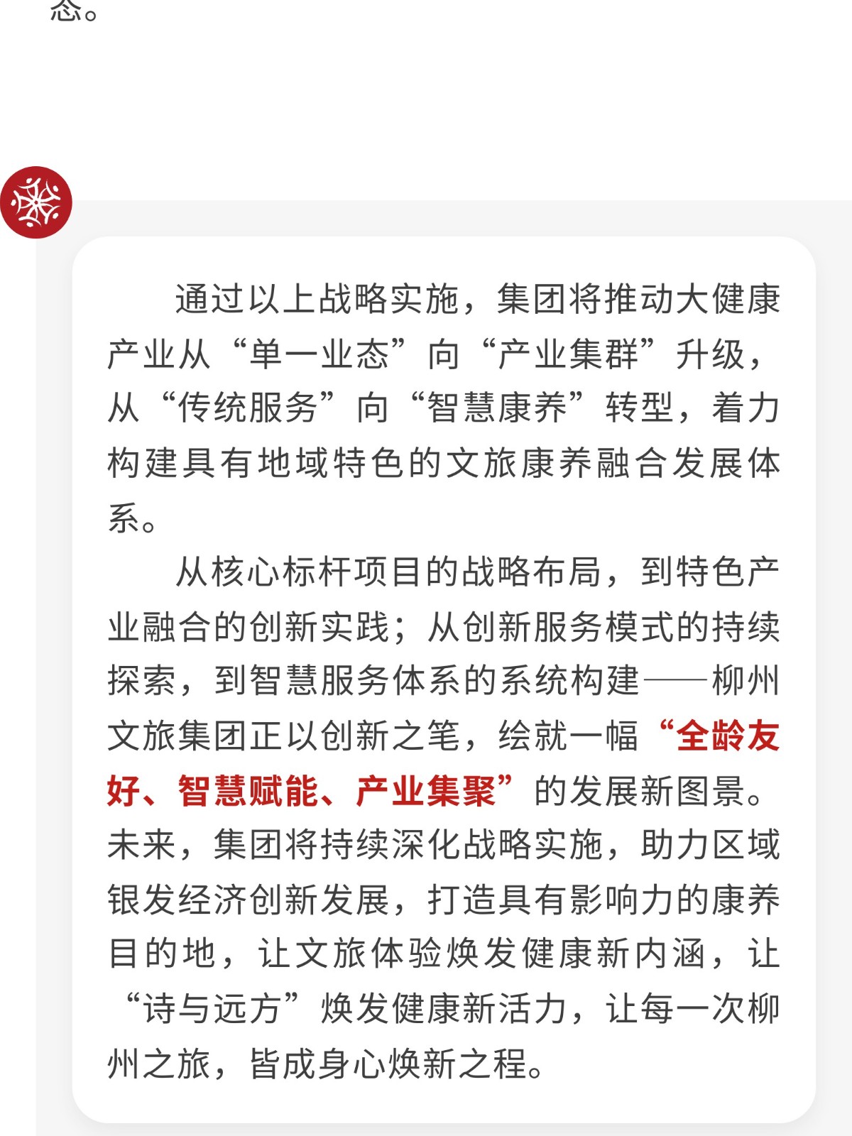 柳州文旅集團(tuán)推動(dòng)文旅康養(yǎng)深度融合,培育大健康產(chǎn)業(yè)集群新優(yōu)勢 發(fā)布時(shí)間:2025年09月05日 22時(shí)來源:本站原創(chuàng)瀏覽:194 人次