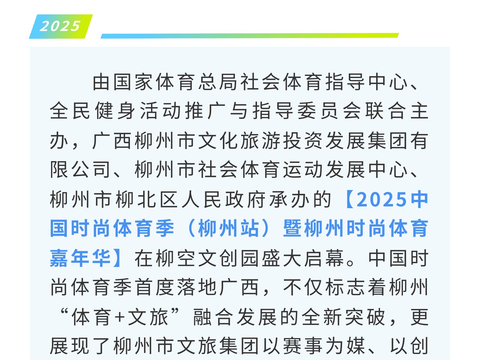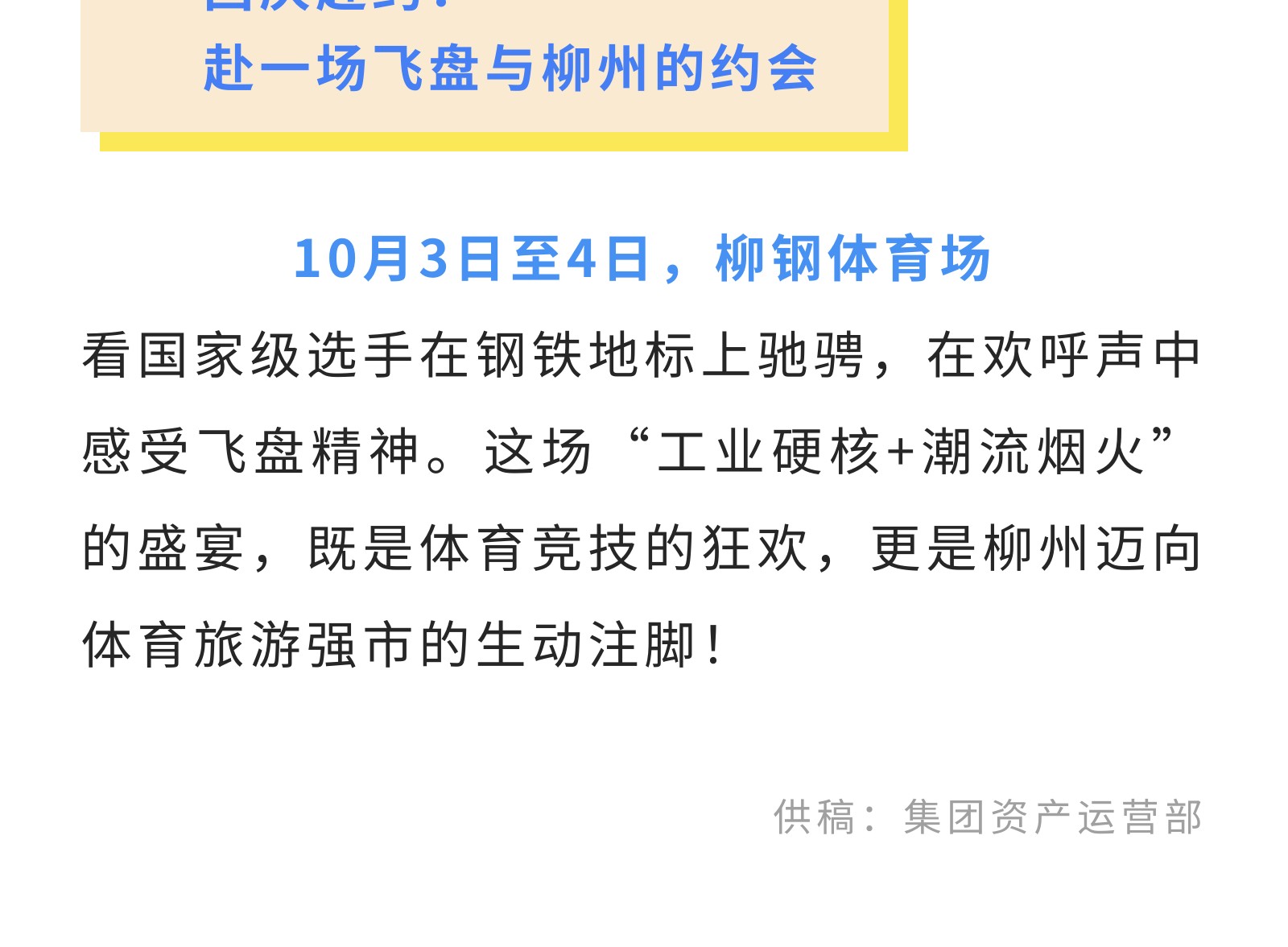 官宣!2025中國時尚體育季(柳州站)飛盤邀請賽來襲!10月3-4日燃情開幕! 發(fā)布時間:2025年09月27日 10時來源:本站原創(chuàng)瀏覽:126 人次