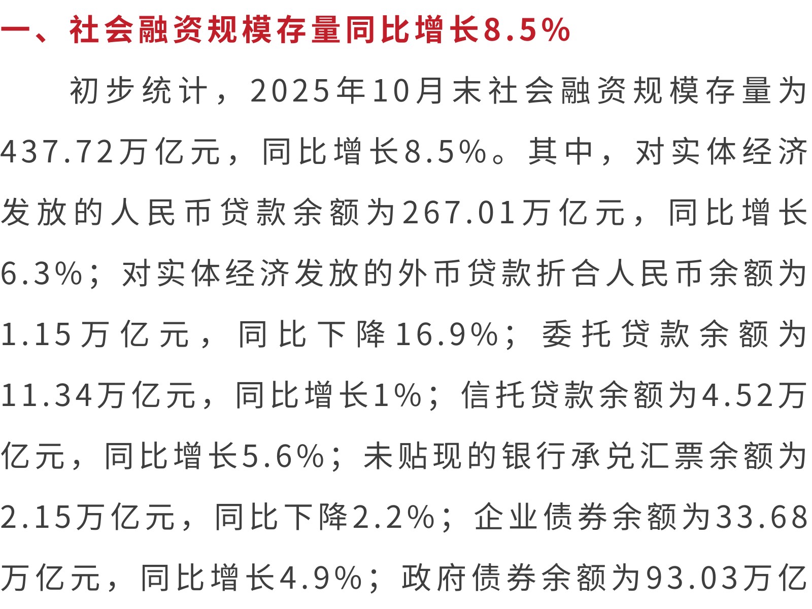 2025年10月金融統(tǒng)計數(shù)據(jù)報告 發(fā)布時間:2025年11月26日 17時來源:本站原創(chuàng)瀏覽:20 人次