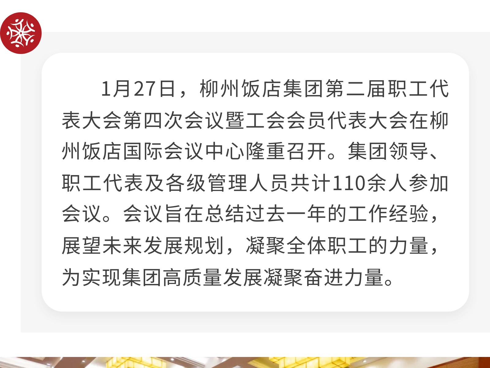 錨定新目標 凝心聚力啟新程——柳州飯店集團第二屆職工代表大會第四次會議暨工會會員代表大會勝利召開 發(fā)布時間:2026年01月30日 10時來源:本站原創(chuàng)瀏覽:6 人次